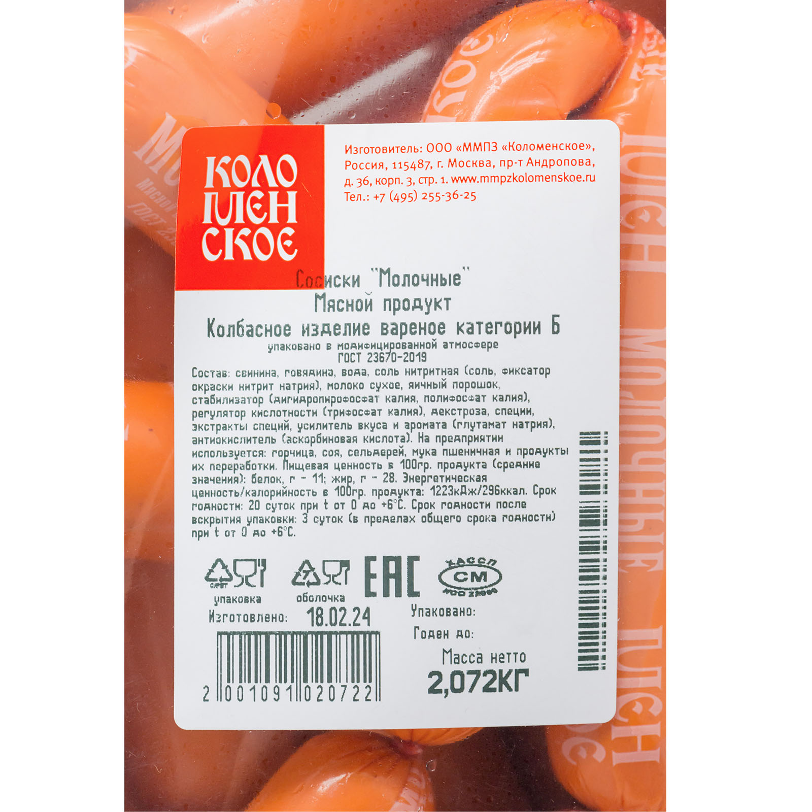 Молочные ГОСТ сосиски цел/о в газ/среде /КОЛОМЕНСКОЕ МК/