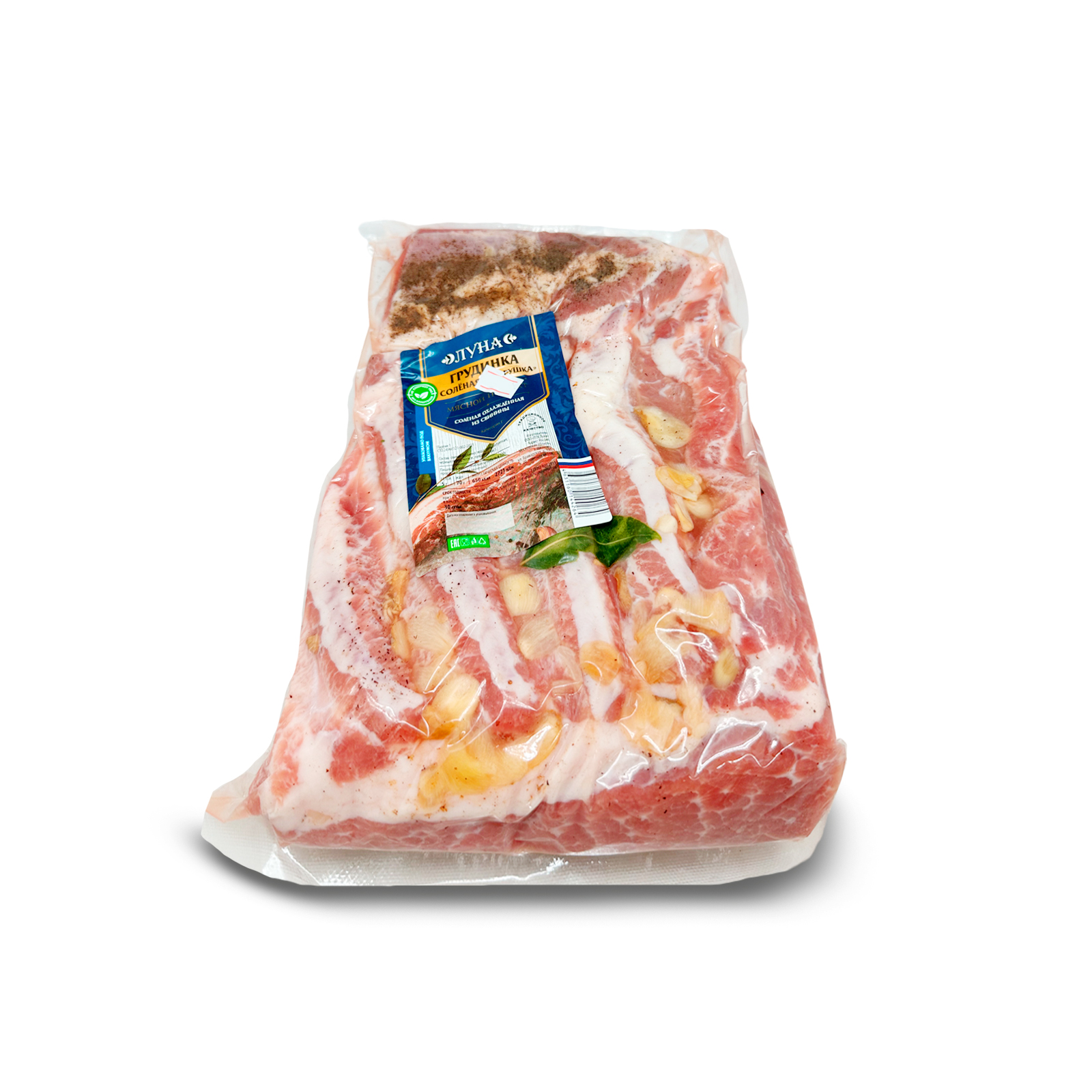 Грудинка соленая в чесноке пласт в вакууме /ЛУНА ТМ/