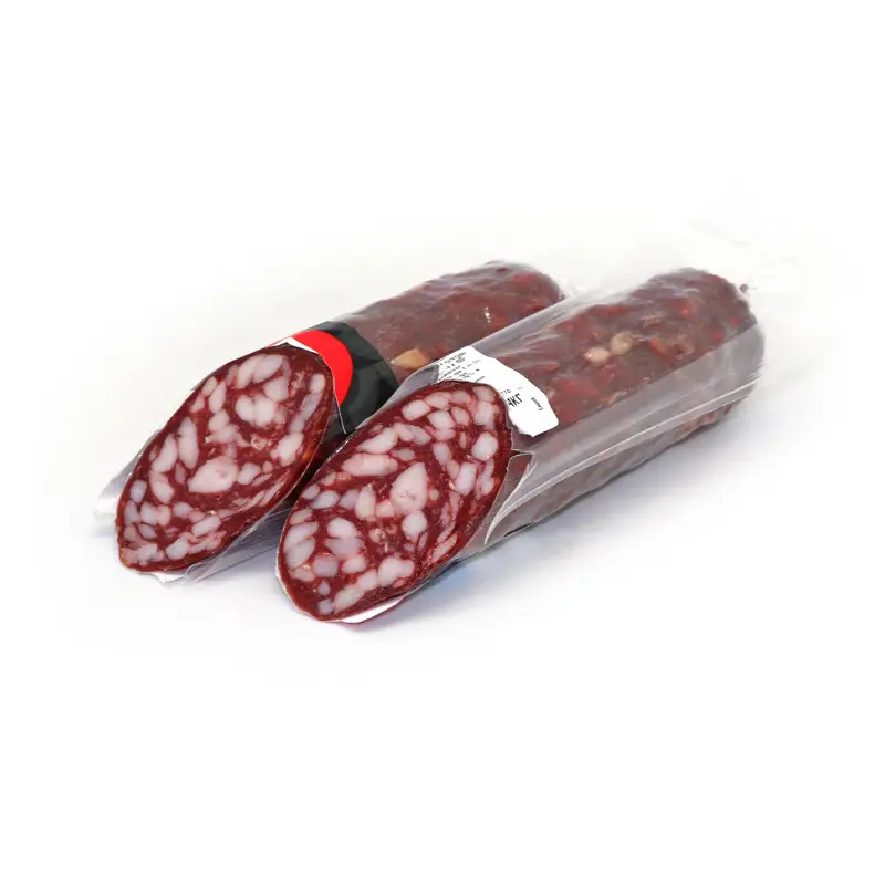 Говядина, шпик, свинина, соль, декстроза, специи (перец черный, мускатный орех), антиокислитель (аскорбиновая кислота), стартовые культуры, мальтодекстрин, фиксатор окраски (нитрит натрия)