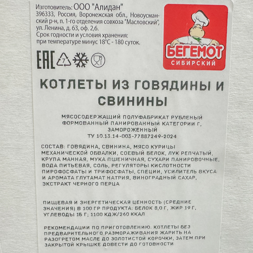 Котлеты Алидан из говядины и свинины вес /АЛИДАН ТМ/