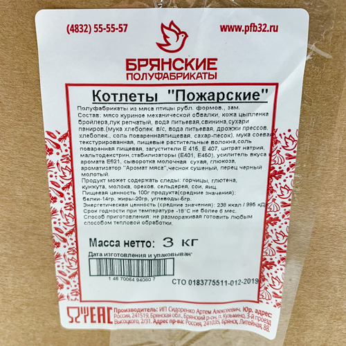 Котлеты куриные Пожарские /БРЯНСКИЕ ПФ/