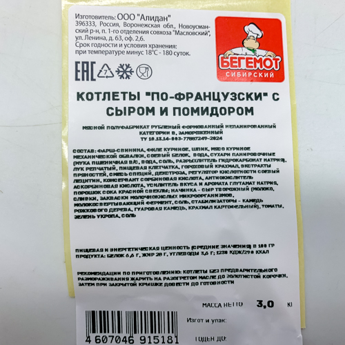 Котлеты По-французски с сыром и помидорами свино-куриные вес /АЛИДАН ТМ/
