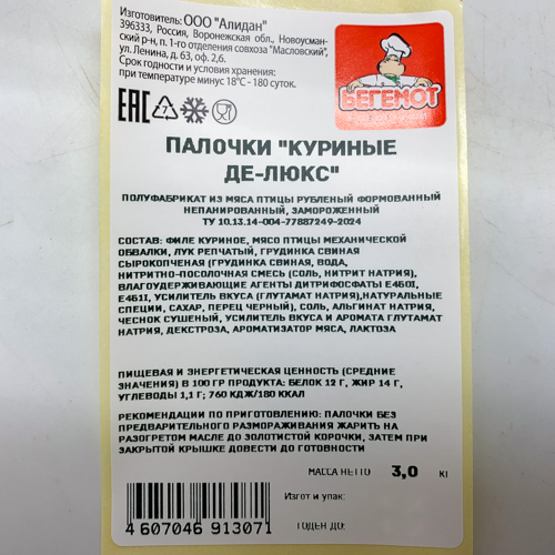 Палочки куриные в беконе Де-Люкс вес /АЛИДАН ТМ/