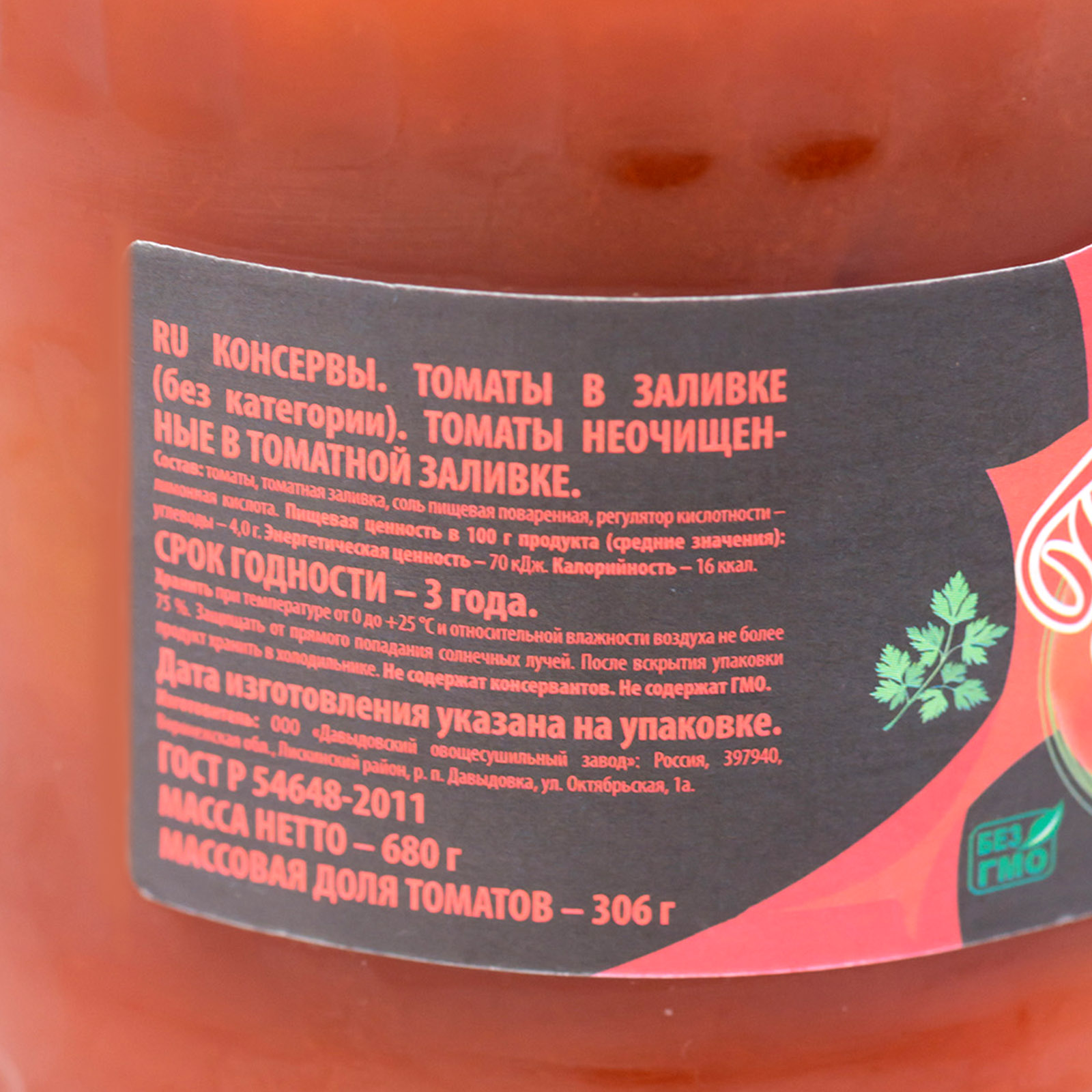 Томаты неочищенные в томатном соусе ГОСТ стекл/банка 700 гр /БАРКО ТМ/