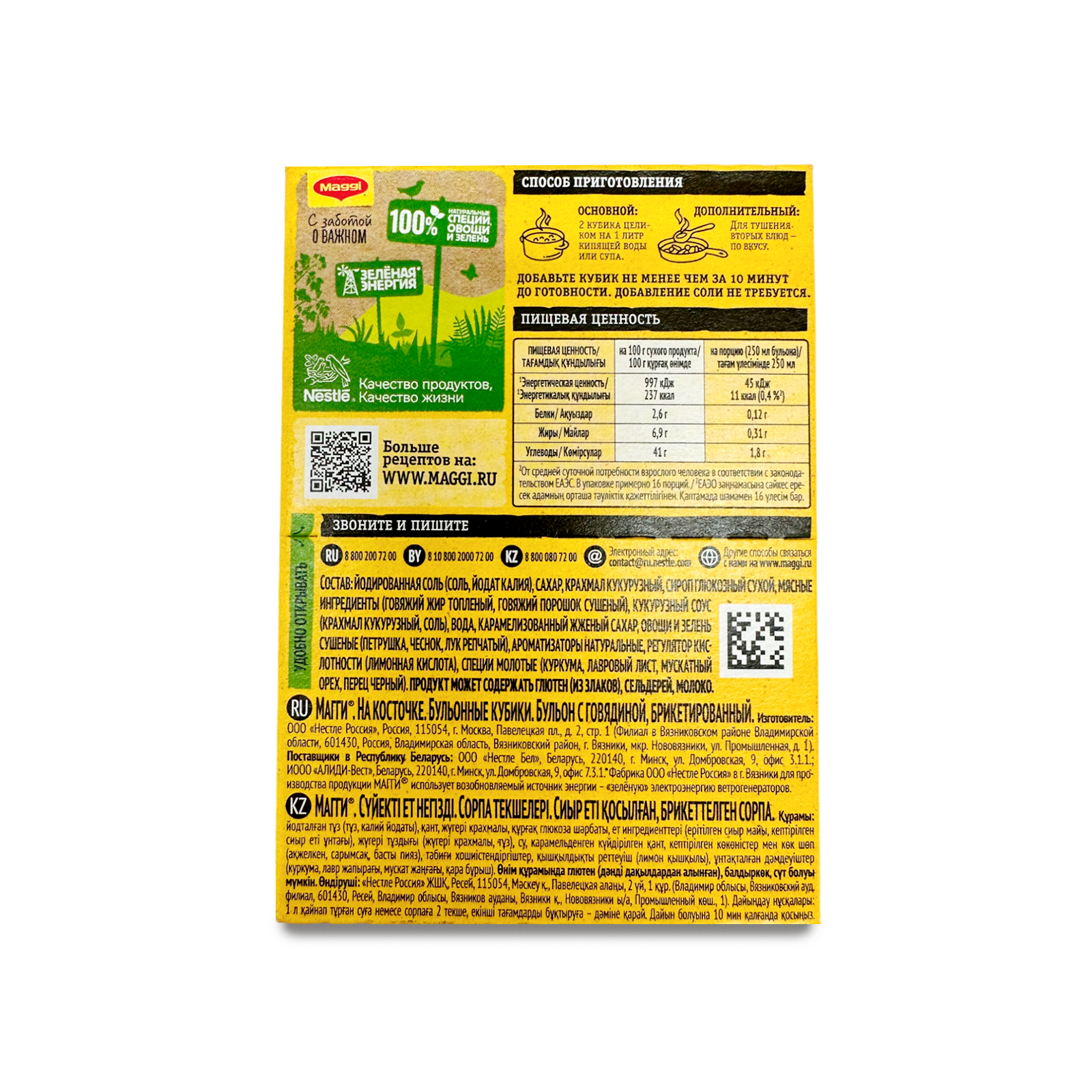 Бульон говяжий на косточке упаковка 72г (1 кубик 9г*8шт в упаковке) /МАГГИ ТМ/